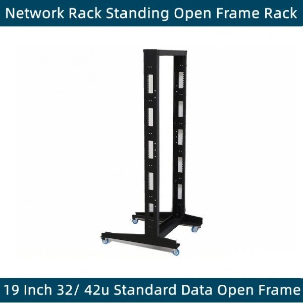 Easy Install 22U 2 post 19 inch Open Frame Rack Network Equipment Rack Standing Open data Frame Rack with Wheel